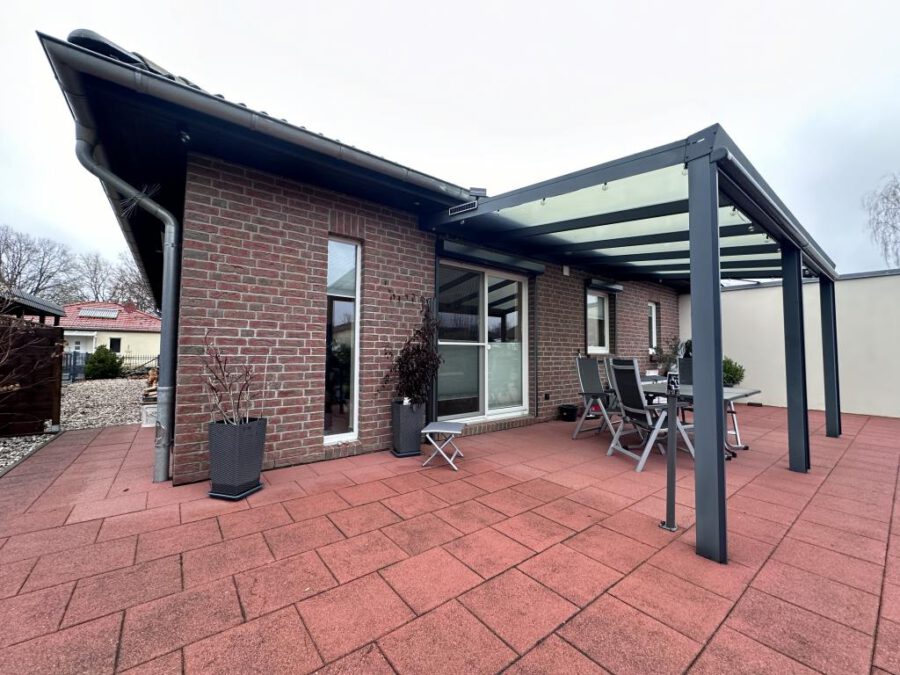 • elektrisch betriebene Senkrechtmarkisen im Terrassenbereich