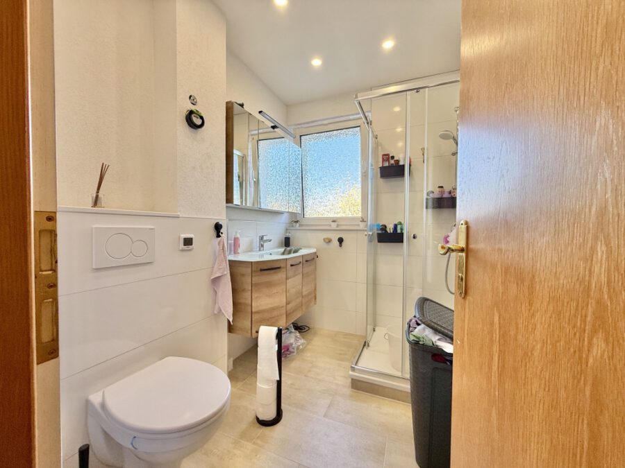 Der Sonnenbalkon mit elektrischer Markise ist ein weiteres Highlight. Die Wohnung verfügt über 2-fach isolierverglaste Fenster mit Jalousetten in allen Zimmern sowie eine Heizung mit elektronischen Thermostaten und Zeitschaltuhren.